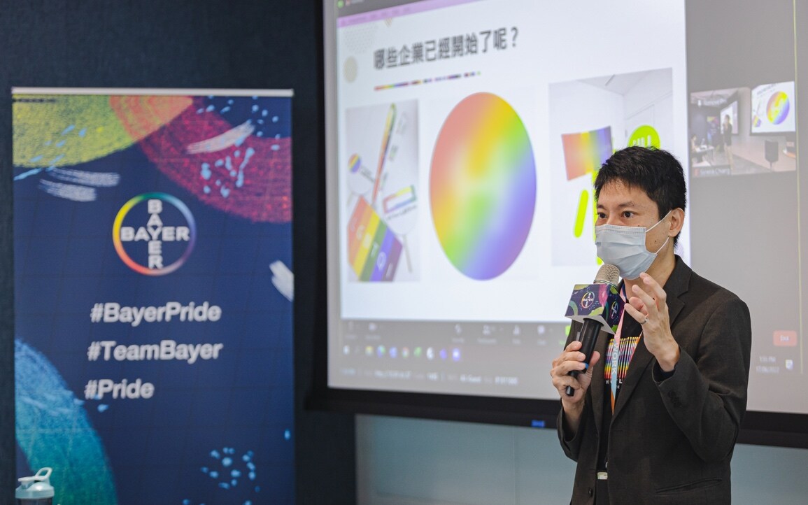 台灣拜耳攜手德國經濟辦事處(German Trade Office Taipei,簡稱GTO)響應2022同志驕傲月,舉辦「性別零阻礙 落實職場我們都有愛」專題演講,為深化多元與包容的企業文化,在公司的支持下,為LGBT+多元族群與支持盟友成立企業資源團體(Business Resource Group)「BLEND」社群。今年,拜耳全球與BLEND社群發起為期一個月的「Be Proud Be Bayer」的主題活動,支持並推廣「多元共融」(Inclusion & Diversity,簡稱 I&D),這也是拜耳企業永續目標之一。